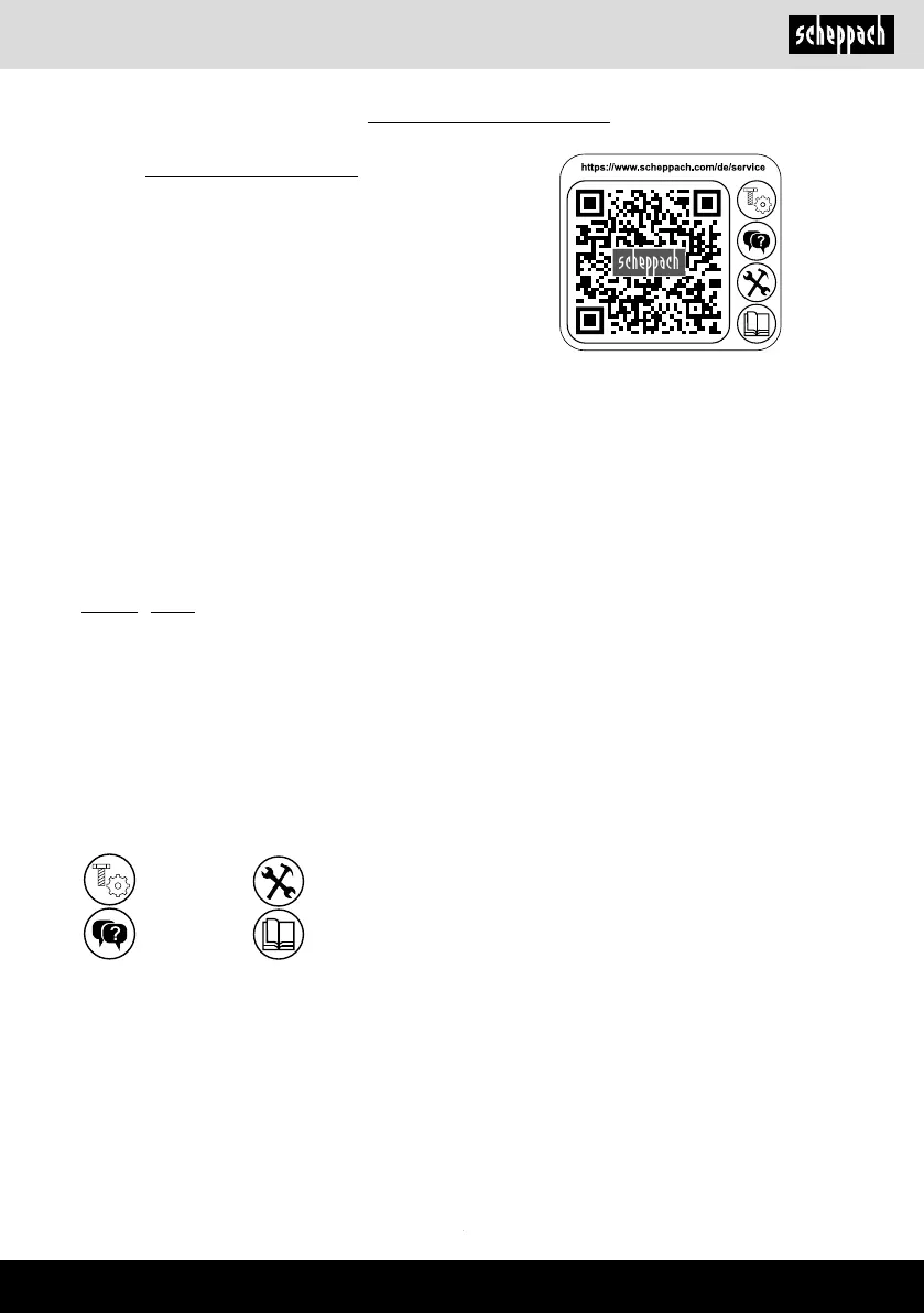 Telefon: +800 4002 4002 (Service-Hotline/Freecall Rufnummer dt. Festnetz**) · Telefax +49 [0] 8223 4002 20 · E-Mail: service@scheppach.com