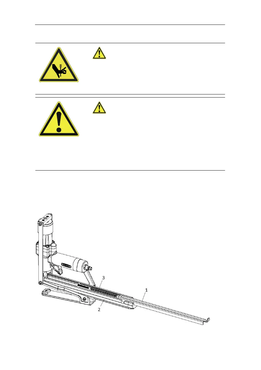 Place the fasteners (3) in the magazine (2) over the staple