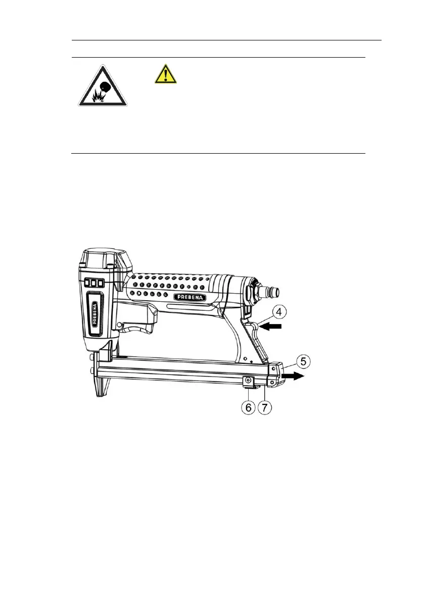 Um das Magazin (7) zu öffnen, drücken Sie die Arretierung (4) in