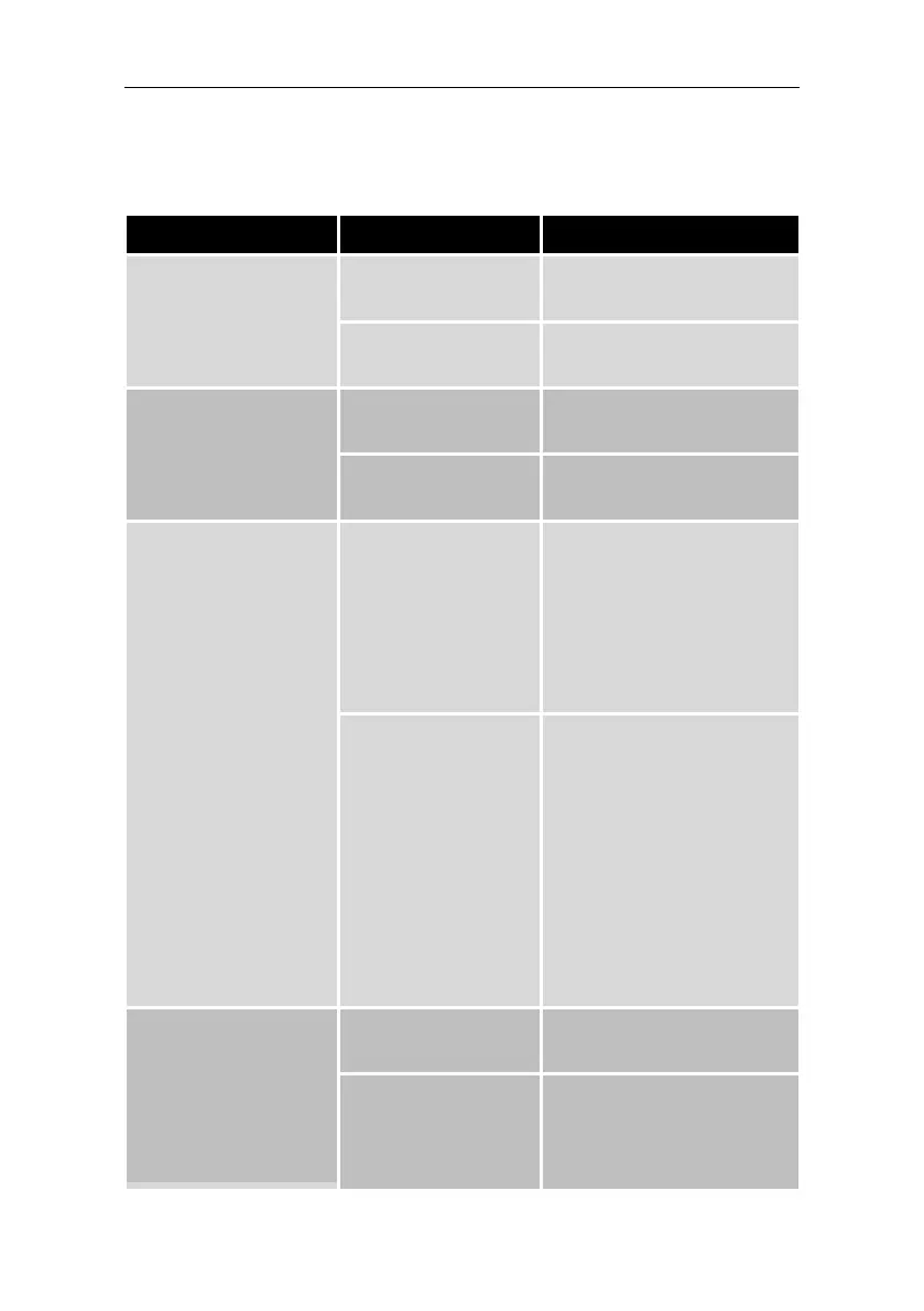 The following chart shows possible malfunctions and the necessary