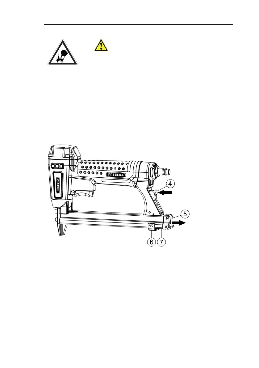 Pour ouvrir le chargeur (7), presser le dispositif de verrouillage (4)