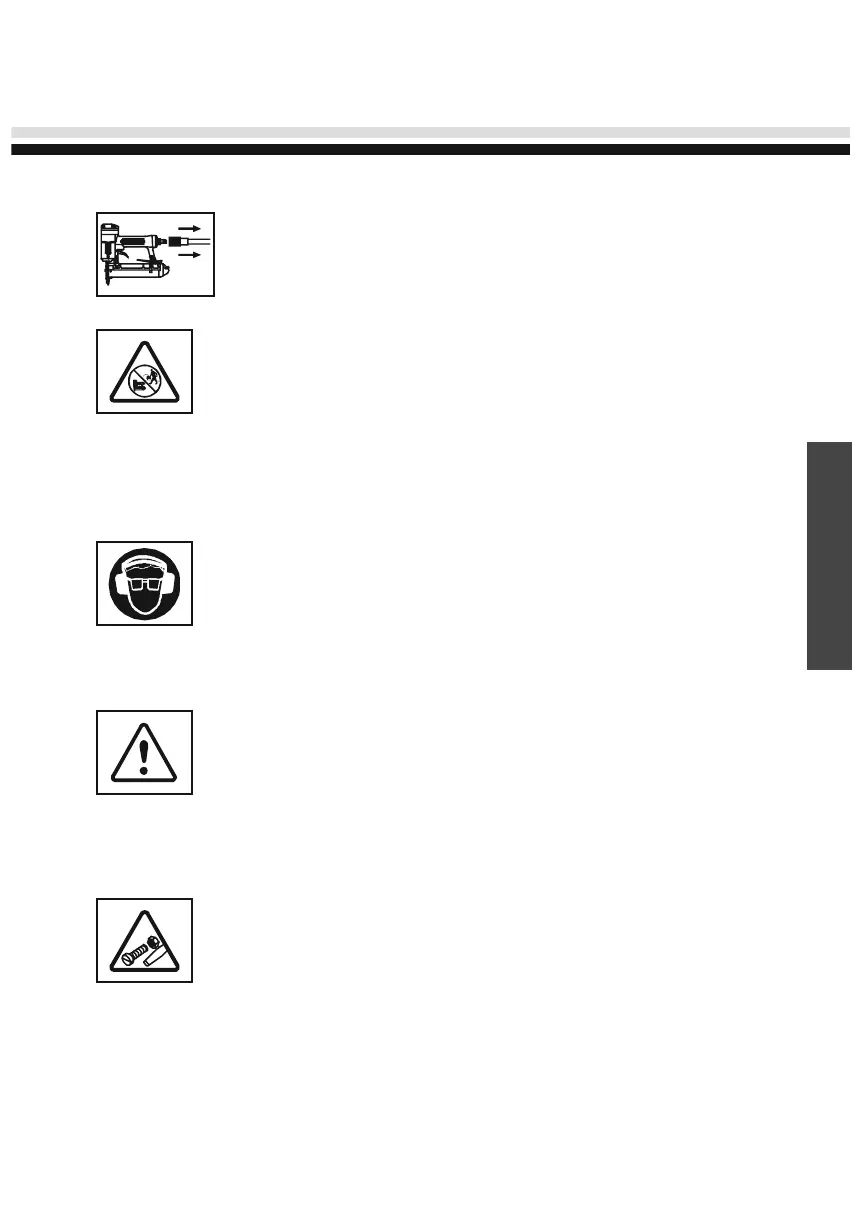 Danger! Fasteners can penetrate thin work materials or can slide off when