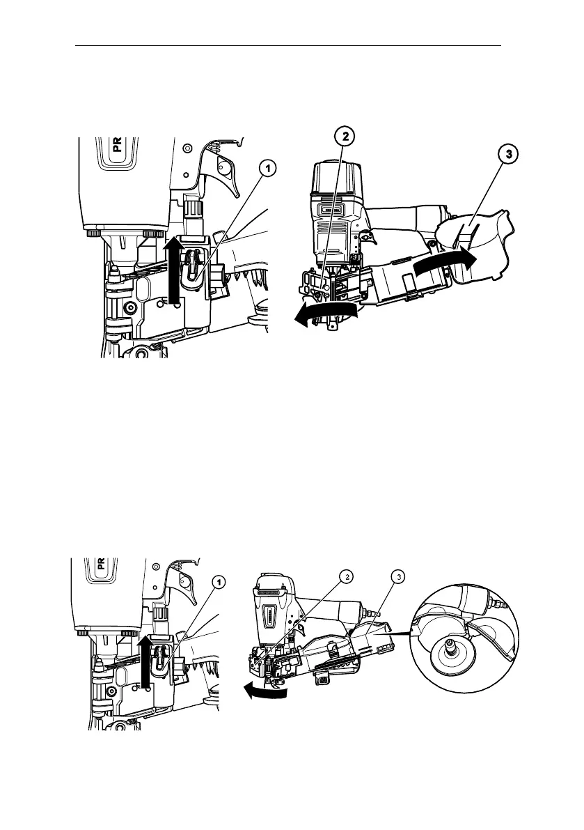 ausgestattet. Im Unterschied zu den anderen Eintreibgeräten klappt das