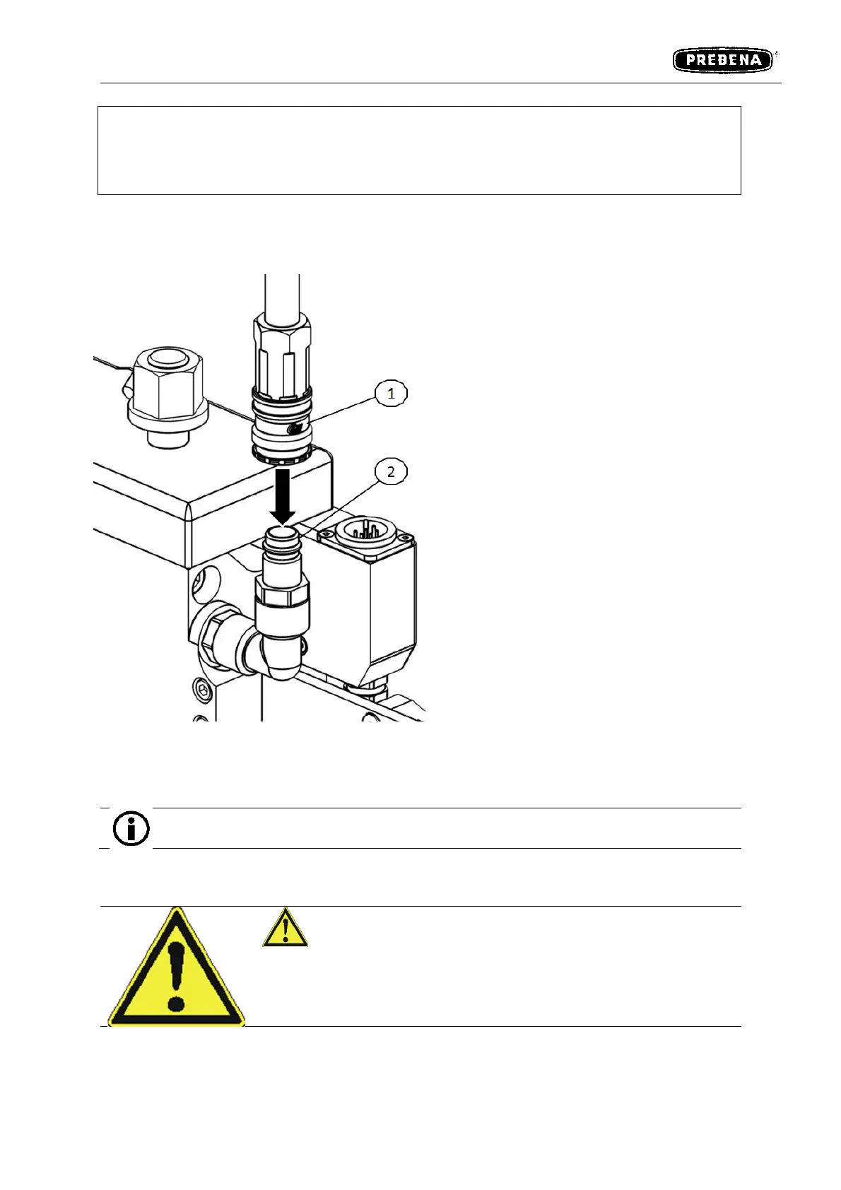 Push the quick-release lock (1) of the compressed air hose onto the connection (2) until it