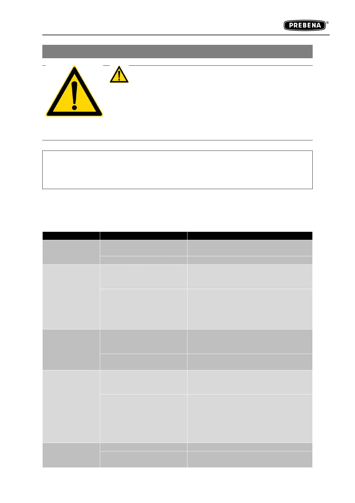 Possible malfunctions and the necessary measures are listed in the overview below.