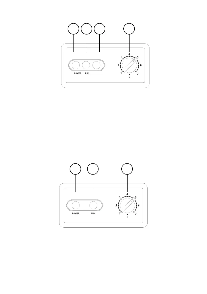 (B) – Indicador de luz verde (POWER): indica que el aparato está encendid
