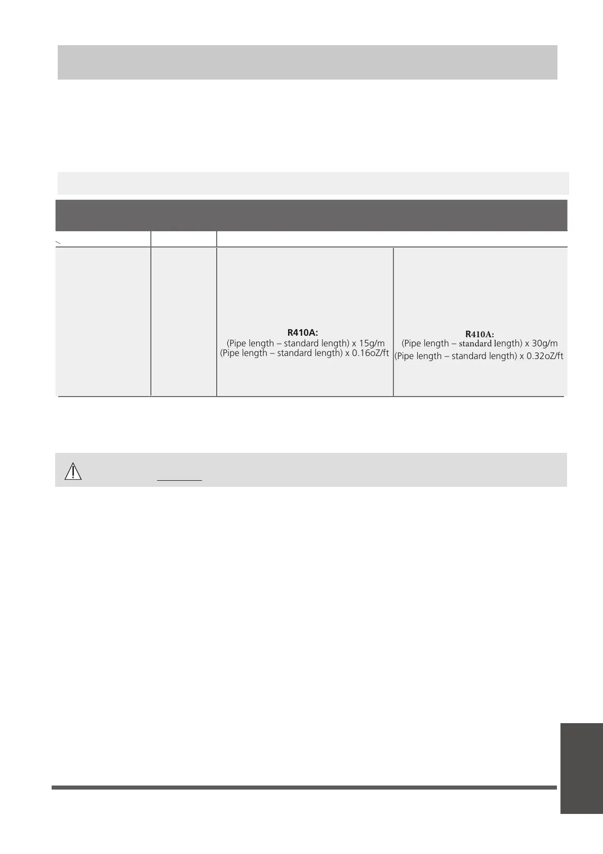 ADDITIONAL REFRIGERANT PER PIPE LENGTH
