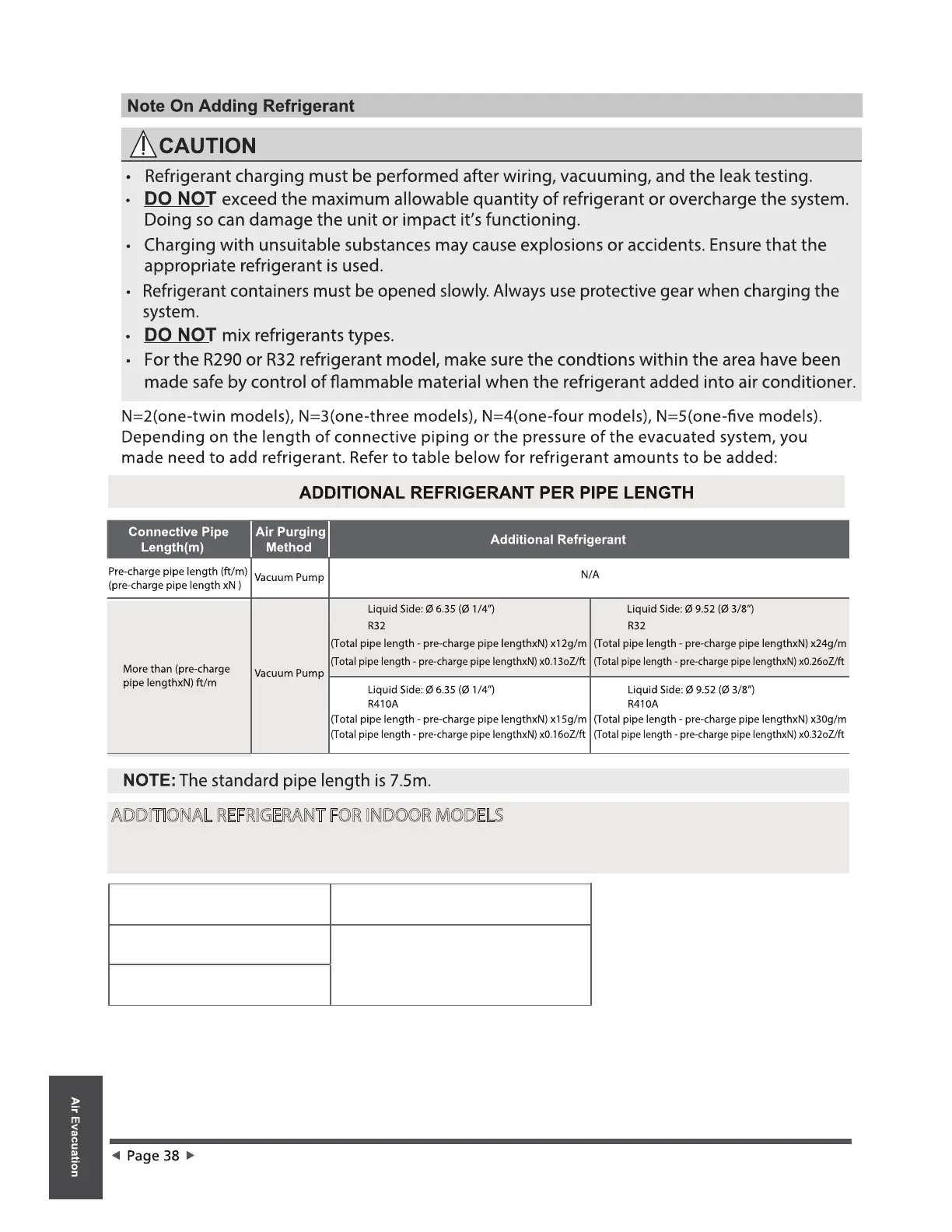 ADDITIONAL REFRIGERANT FOR INDOOR MODELS