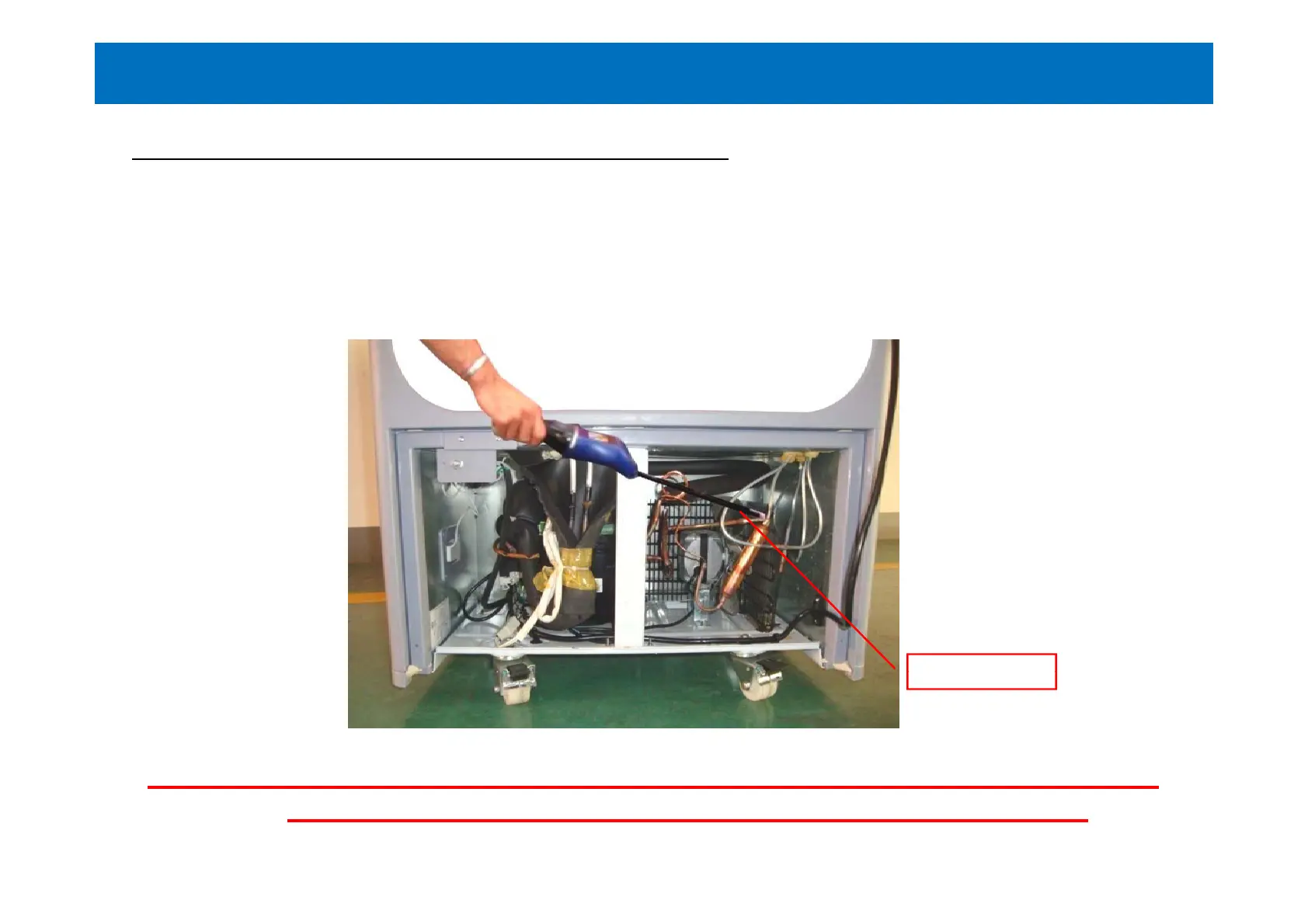 • Using a leak detector suitable for hydrocarbons (HC) check for leaks in the motor compartment area . Avoiding R600a /R290 lea