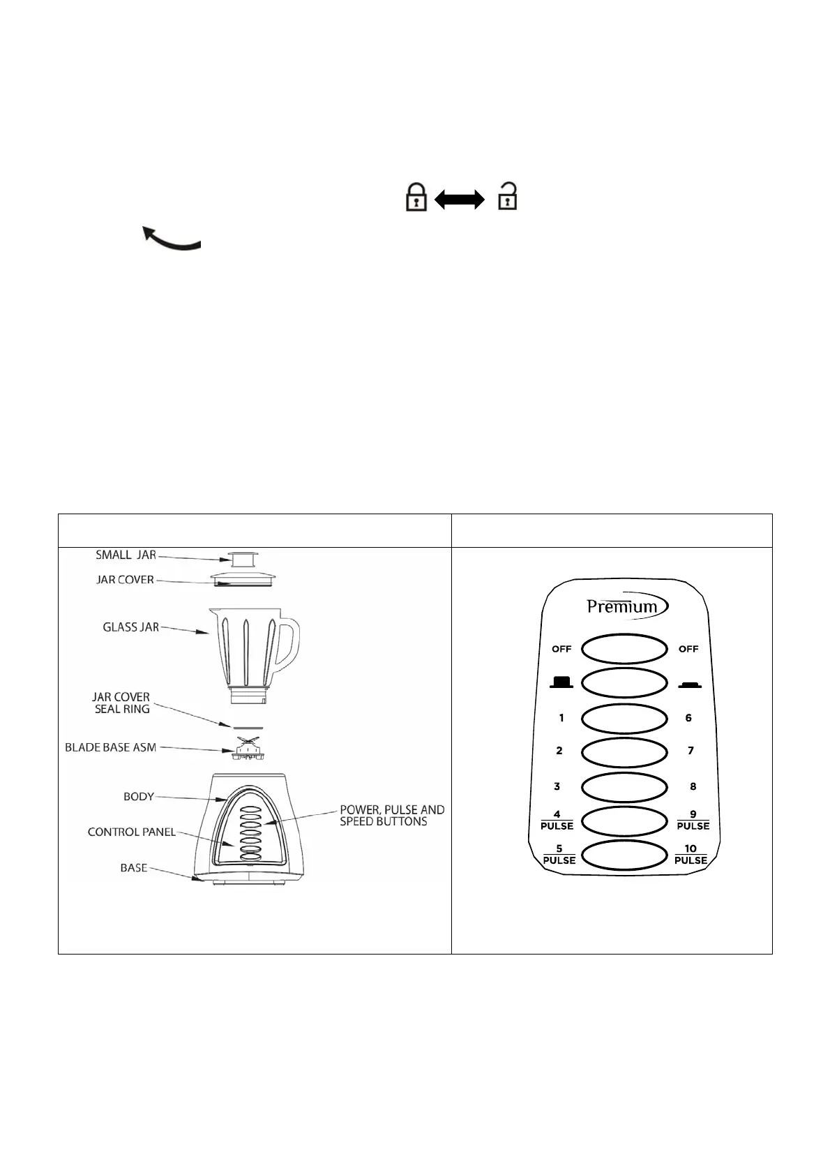 Check that all parts are complete and not damaged. The blender jar is suitable for blending fruits or
