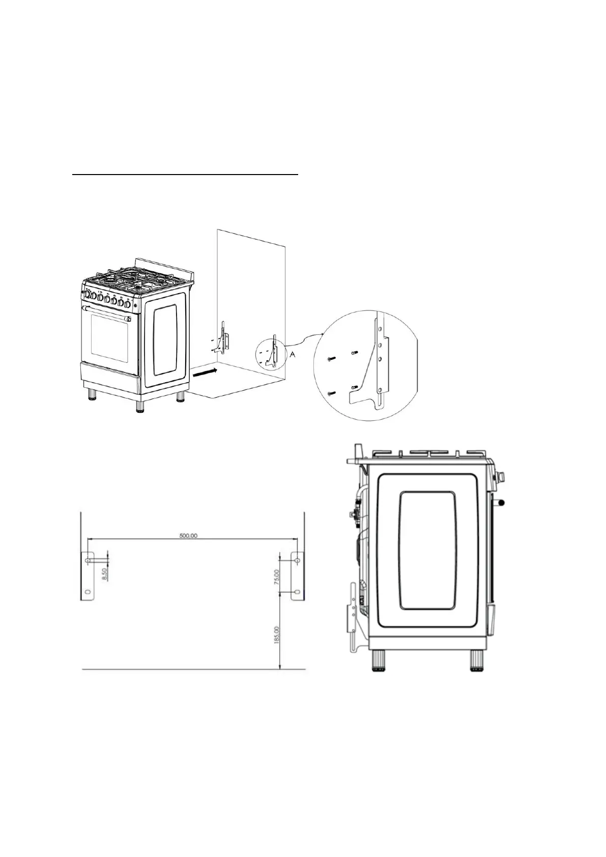 The anti-tip bracket should be attached to the gas stove as shown in the figure. Once the anti-tip