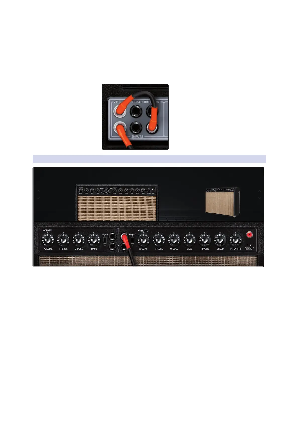channel has two input jacks that differ in input volume, as well as a Bright switch.