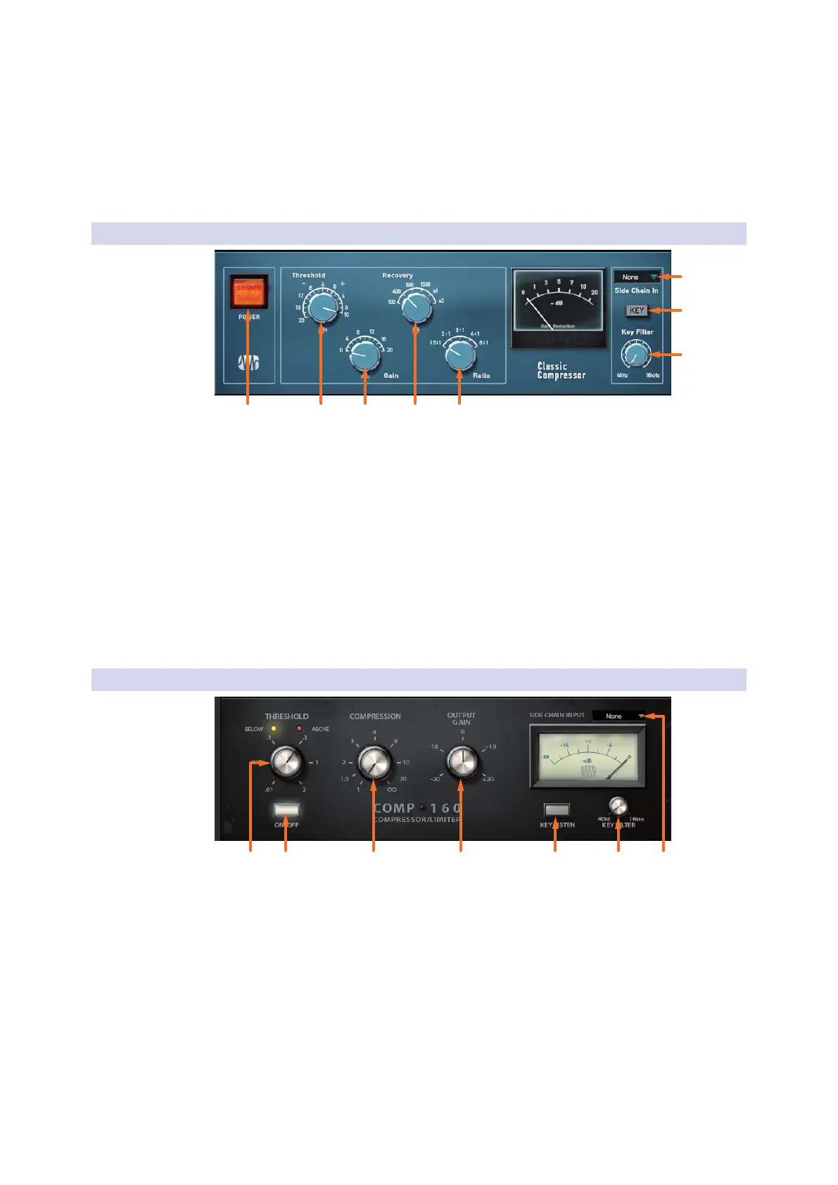 3. Gain. Sets the amount of make-up gain applied to the signal by the compressor.
