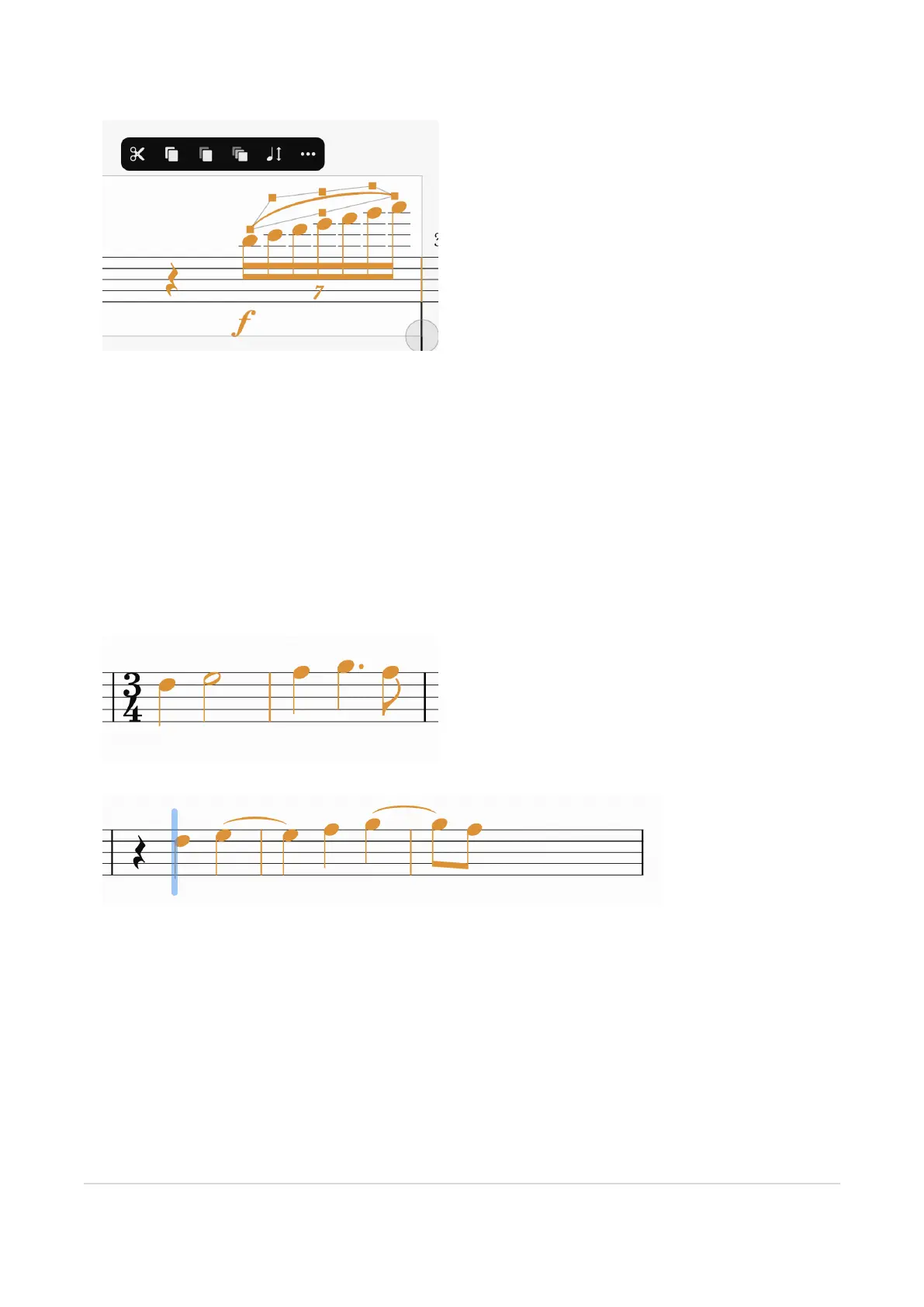 If you’ve double-tapped a measure to select it, an editing shortcuts dialog pops up. This is a quick way to access the most-used tools