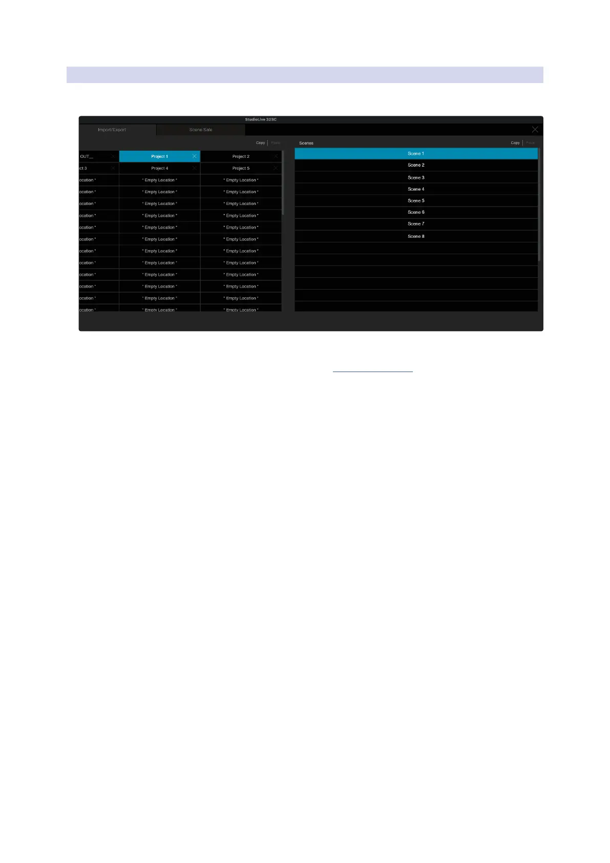 1. To transfer a Project from one mixer to another, insert a formatted SD Card and launch the Scenes menu