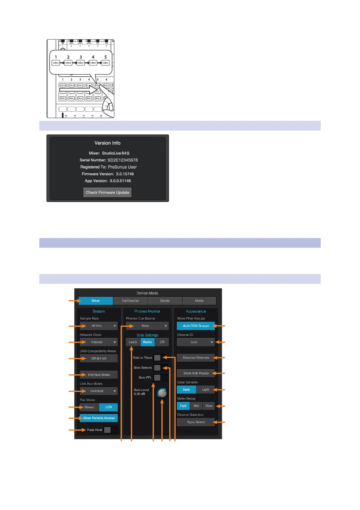 firmware version and update your mixer’s firmware by clicking on the Check Firmware Update button.