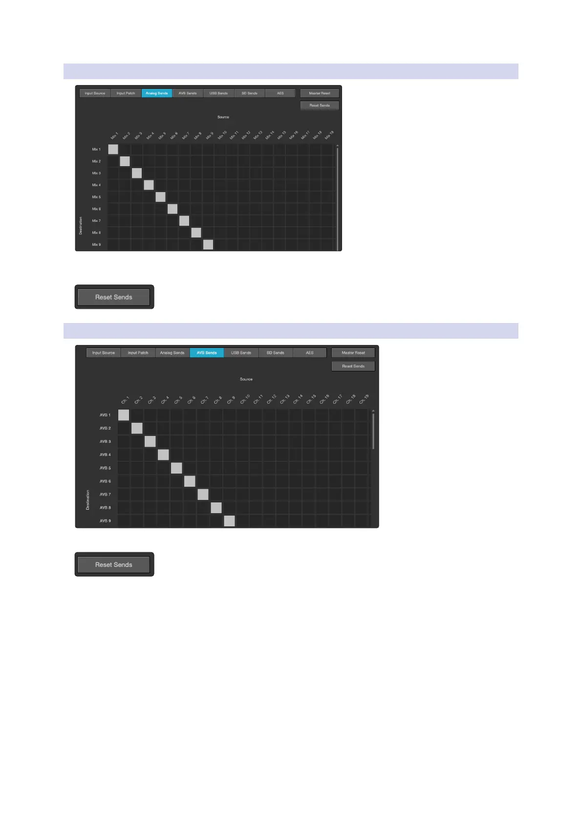Pressing the Reset Sends button will reset the default routing.