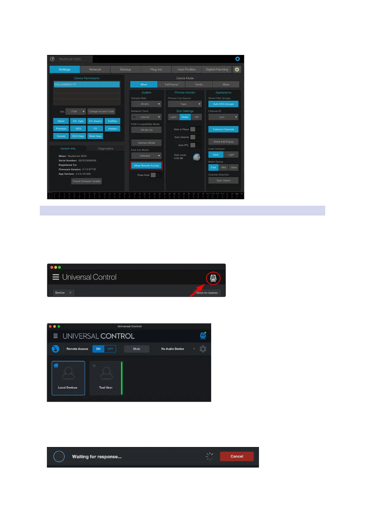 For StudioLive rack mixers you can access the Remote Access feature in the Settings menu under