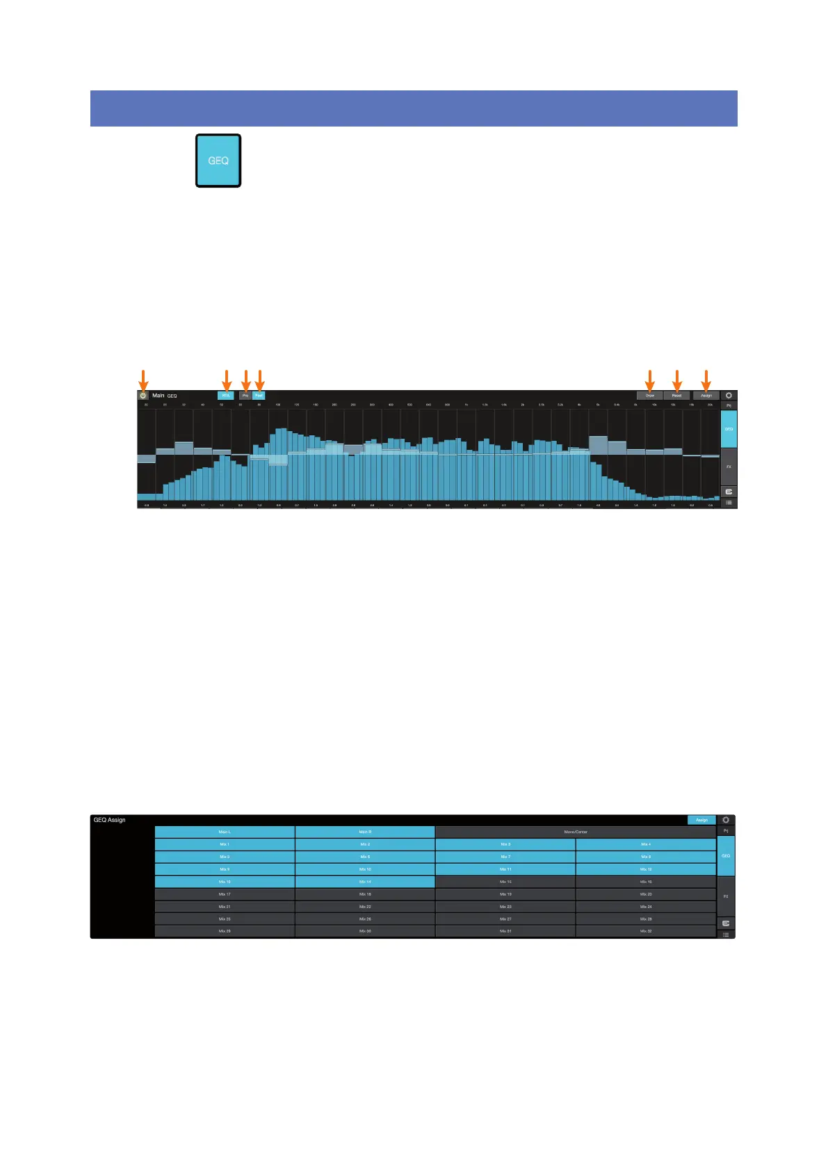 1. GEQ On/O. By default, all graphic EQs are disabled. To