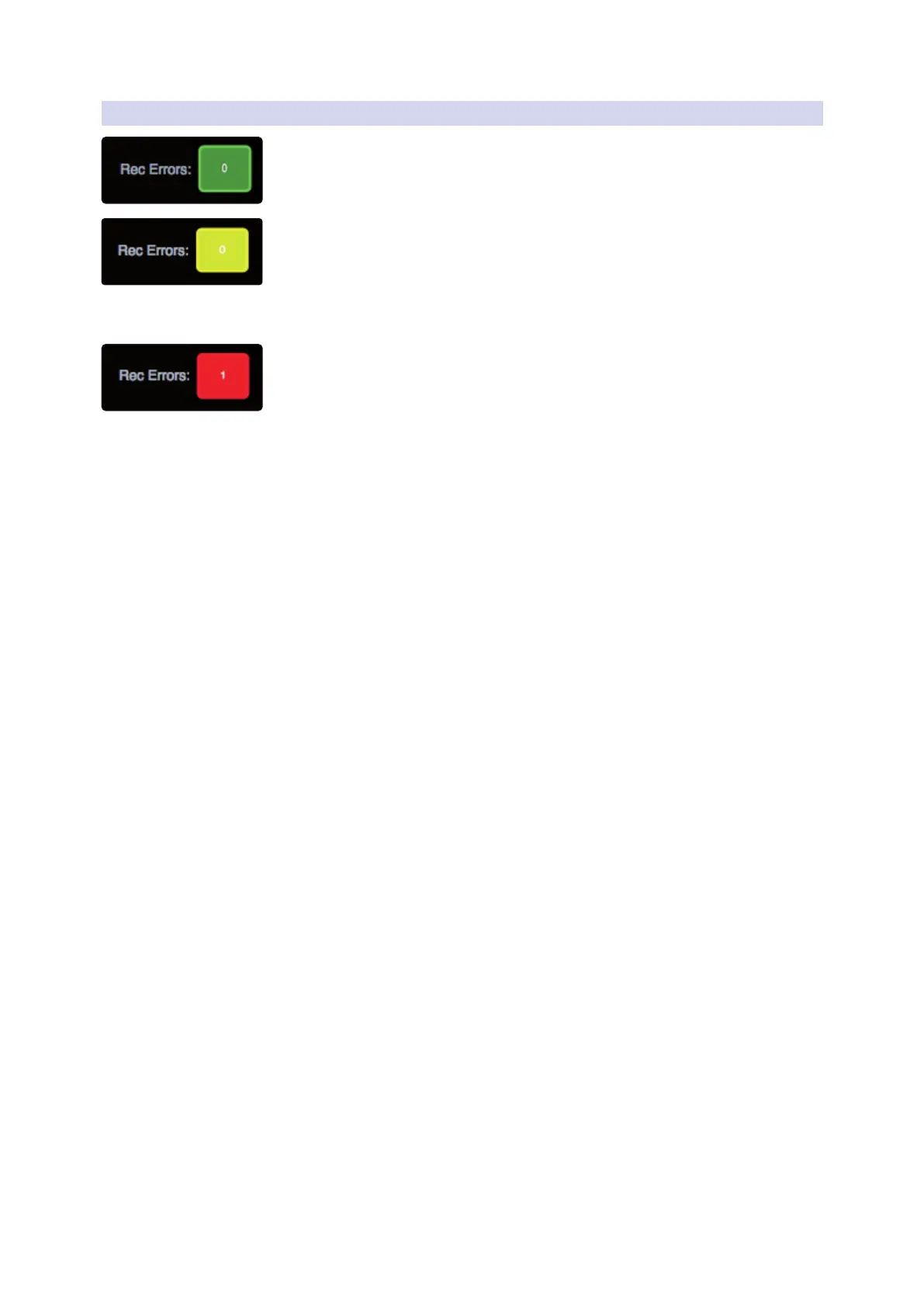 Red. As soon as a recording error occurs, this indication will turn red to alert you. The
