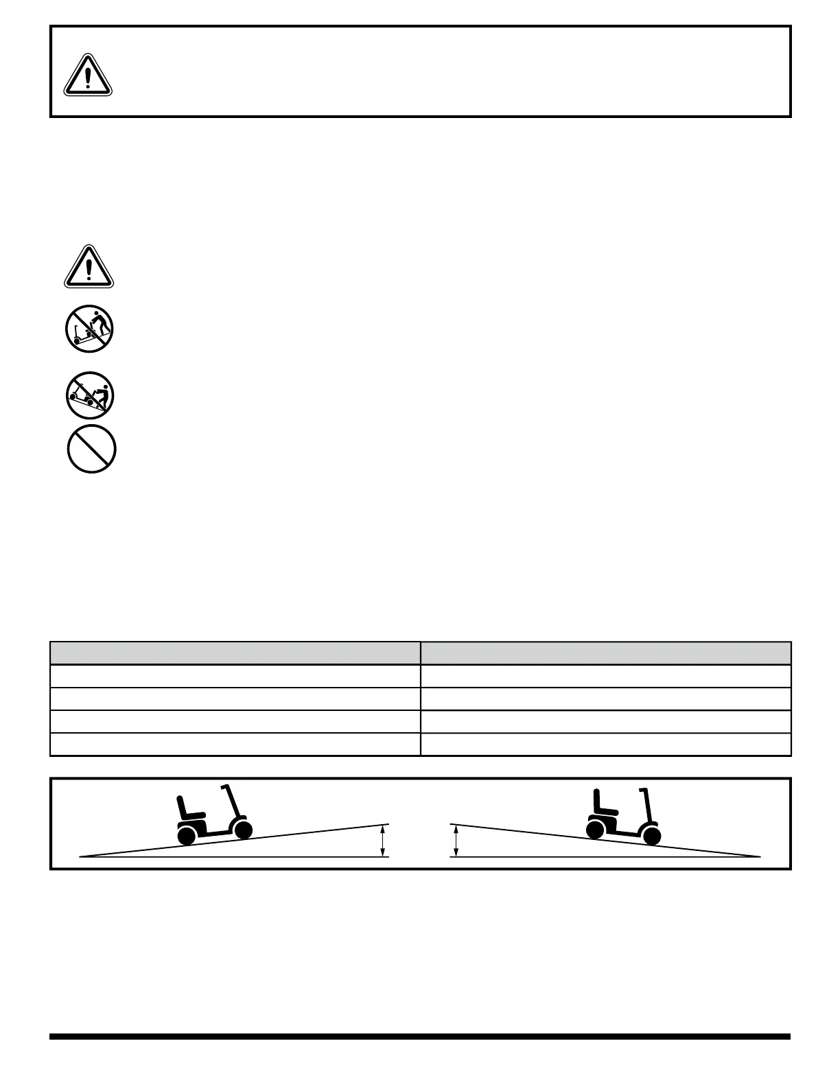 WARNING! When climbing an incline, do not zigzag or drive at an angle up the face of the incline. Drive your