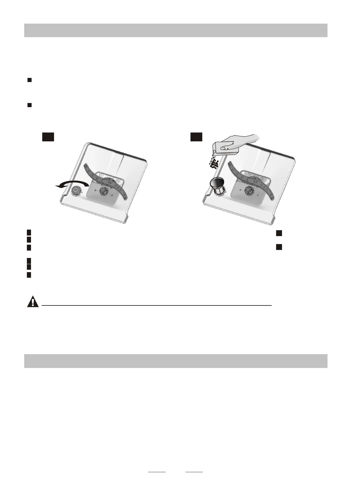 1. The salt container must only be refilled when the salt warning light in the control panel comes on.