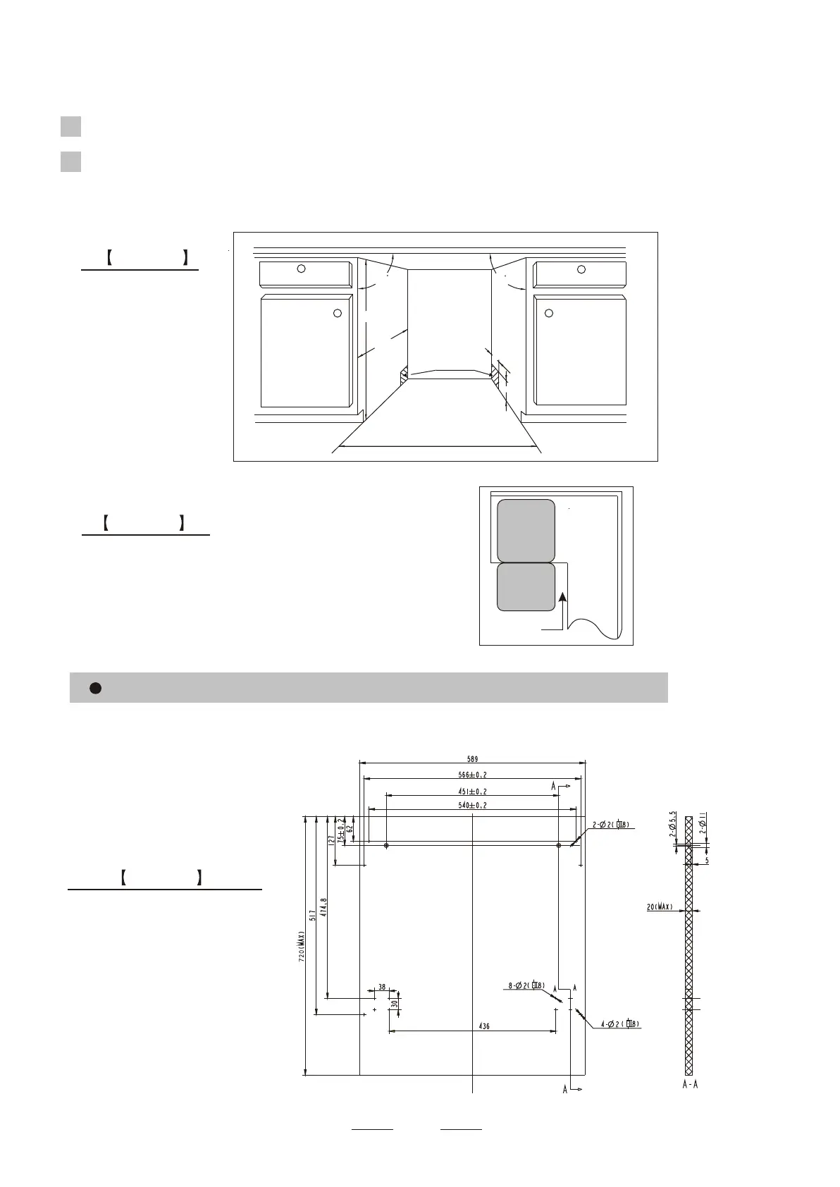 Illustrations of cabinet dimensions and installation position of the dishwasher