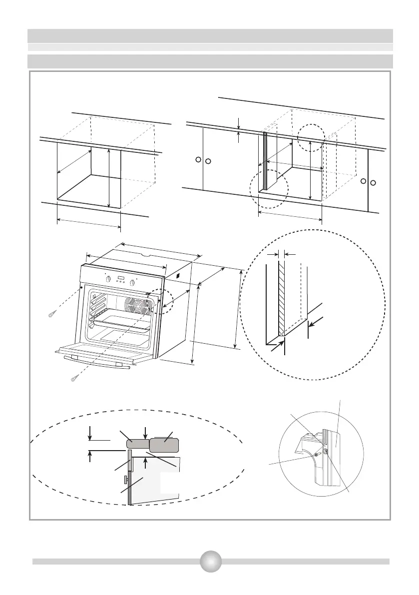 Insert the oven into the cabinet by pushing it forward. Open the oven door and insert 2 screws