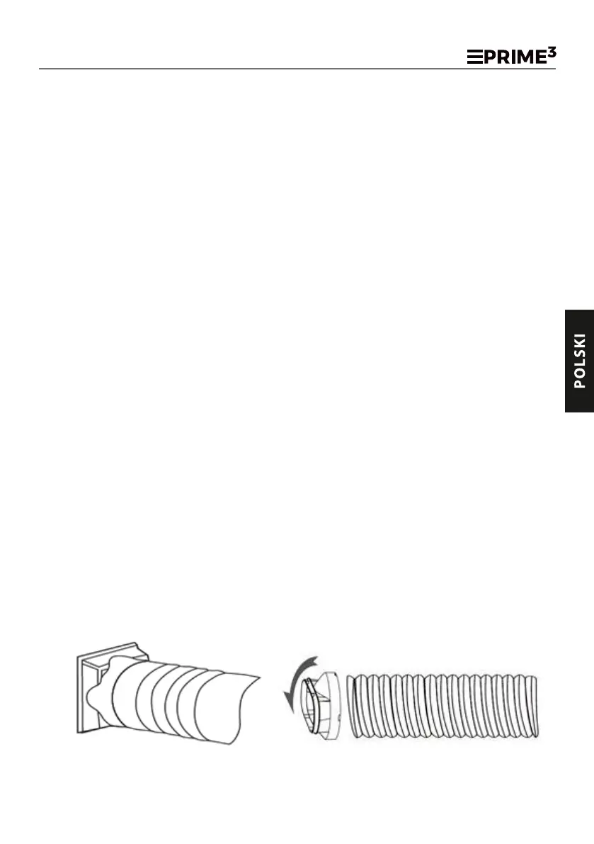 należy rurę odprowadzającą powietrze podłączyć do urządzenia, drugi koniec skierować przez na zewnętrz