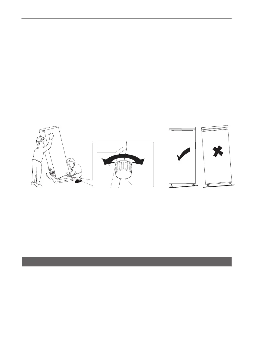 • Voor oneen oppervlakken kunnen de voorste stelvoetjes op één lijn worden