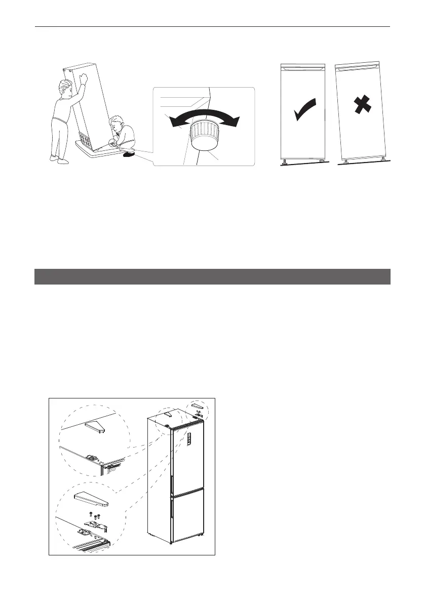 • Das Gerät kann über die Stellfüße waagerecht ausgerichtet werden. Diese