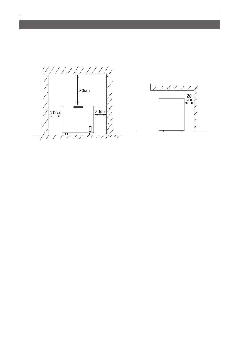• Die Luft rund um den Gefrierschrank sollte frei zirkulieren können.