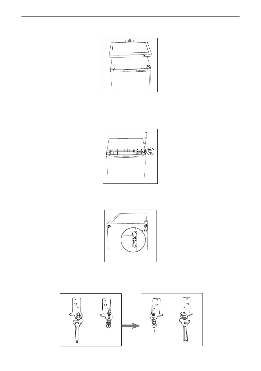 4. Unscrew bottom hinge. Then remove the adjustable feet from both