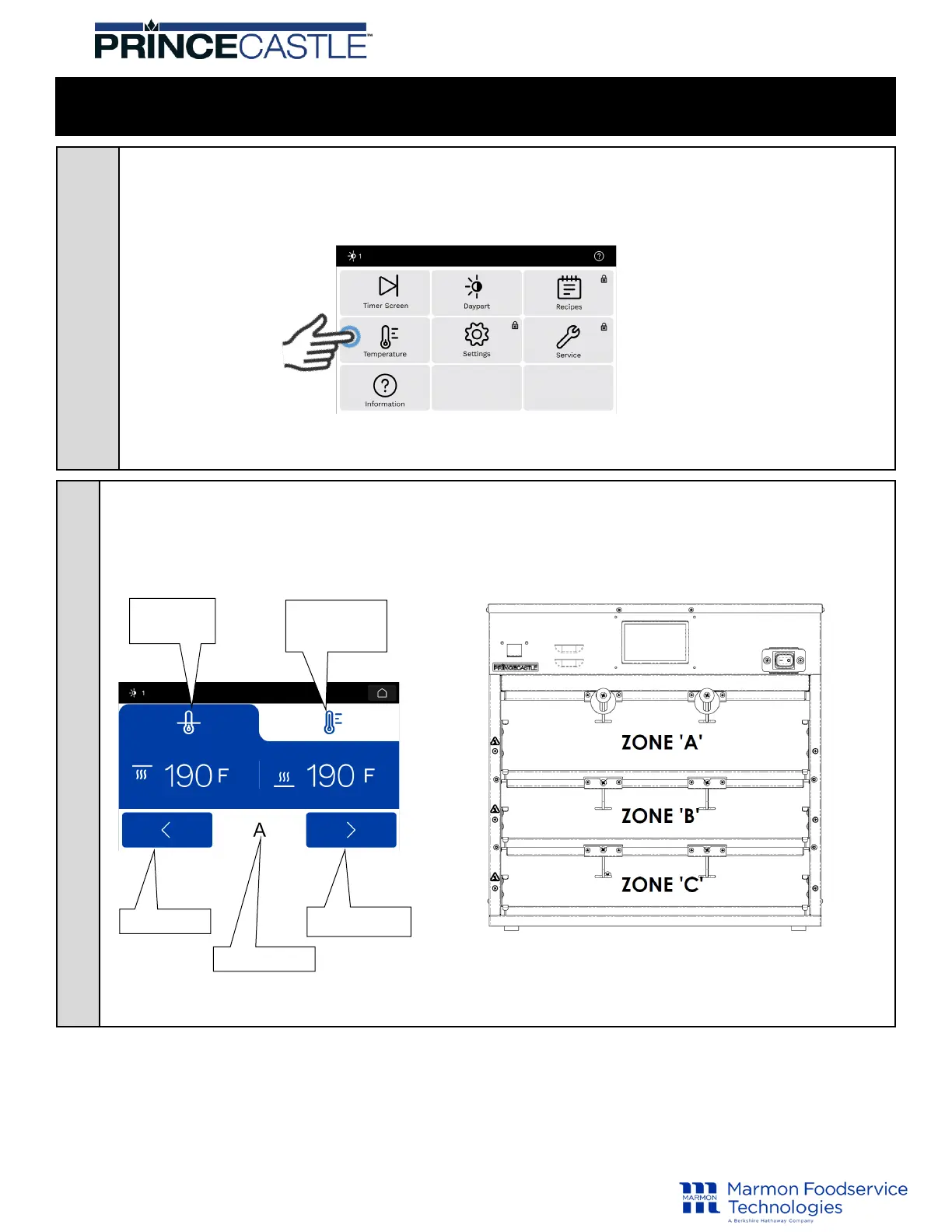 View Temperature settings Touch the Temperature icon on the Home screen. The Daypart Selection screen will appear with