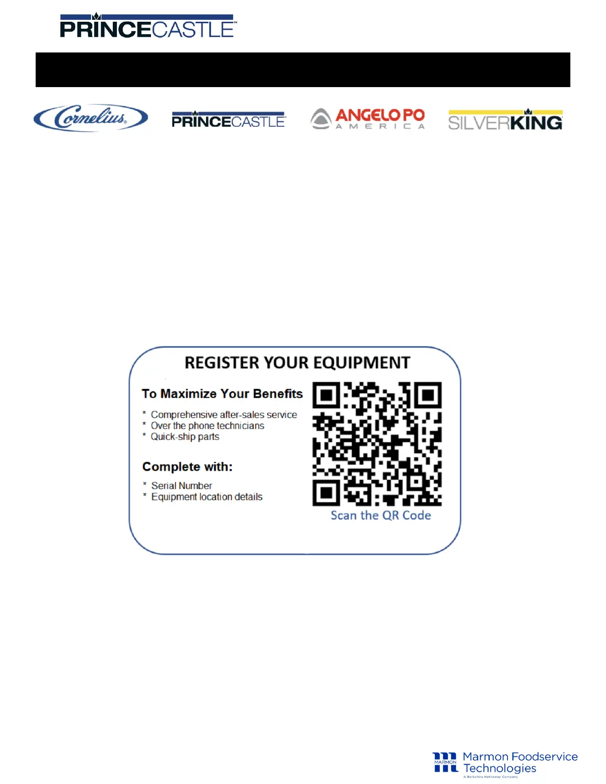sive after-sales support for Cornelius, Prince Castle, Silver King, and Angelo Po products. From technical questions