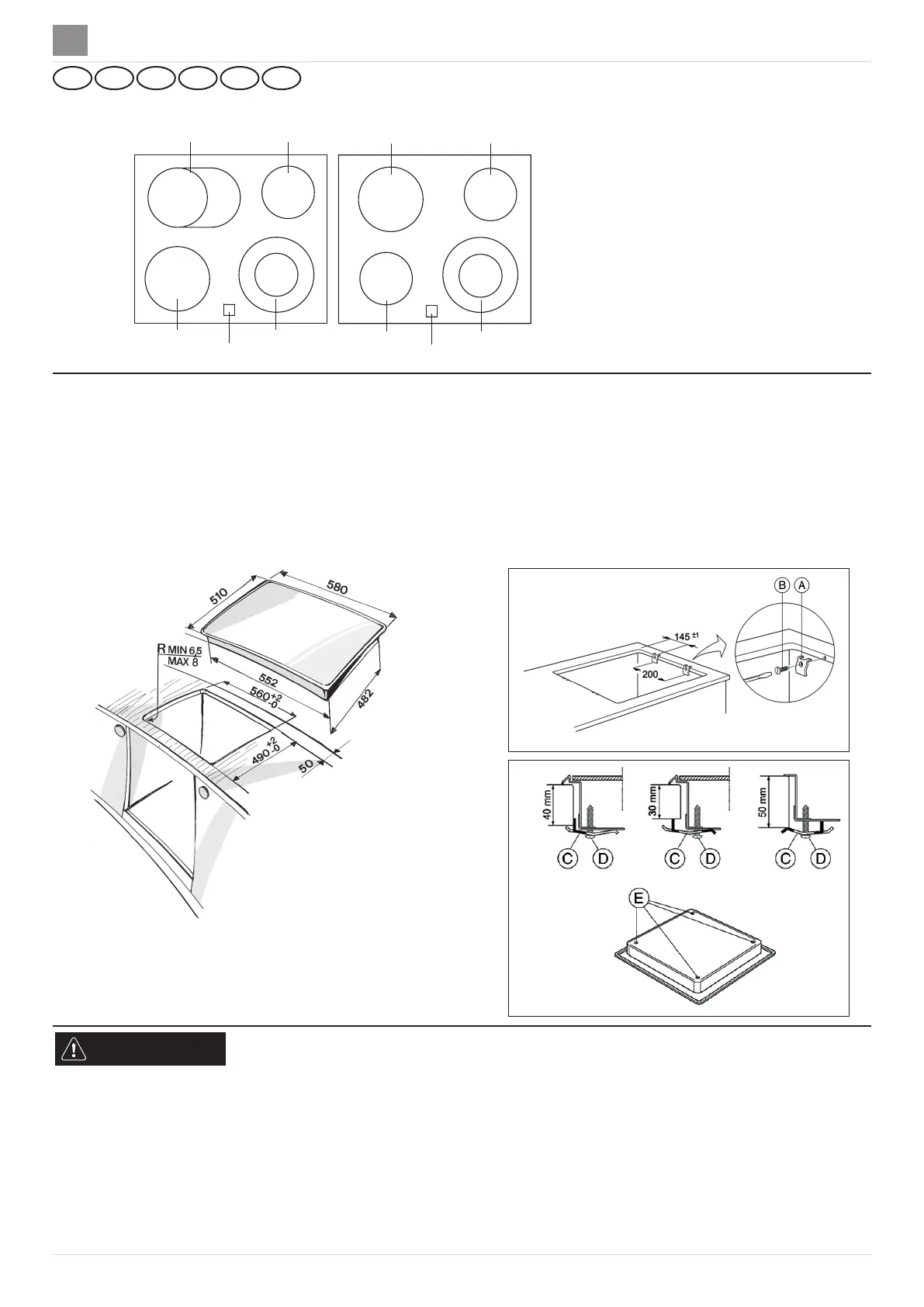 • Das Kochfeld muss in eine Arbeitsplatte mit einer Stärke von mindestens