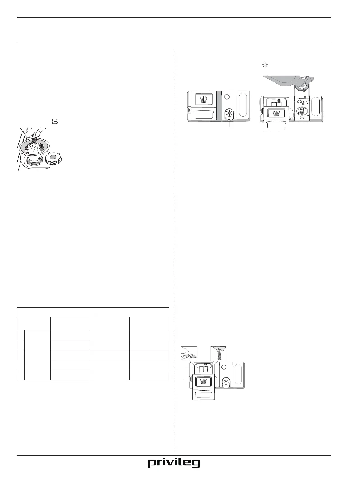 • Press button P to select the level of rinse aid quantity to be supplied.