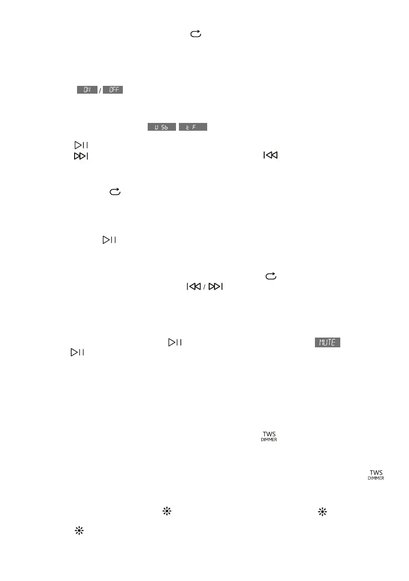 In AUX-modus, druk kort op de knop “ ” om te MUTE; het scherm toont “ ”, druk