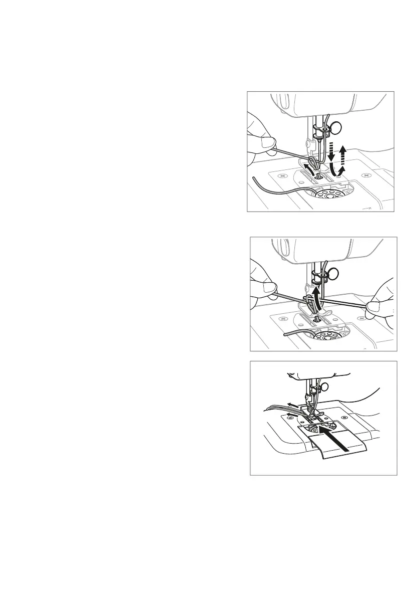 la aguja recogerá el hilo de la bobina y lo pasará a