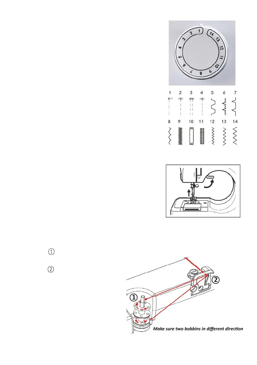1. The sewing machine has a choice of 14 different stitch