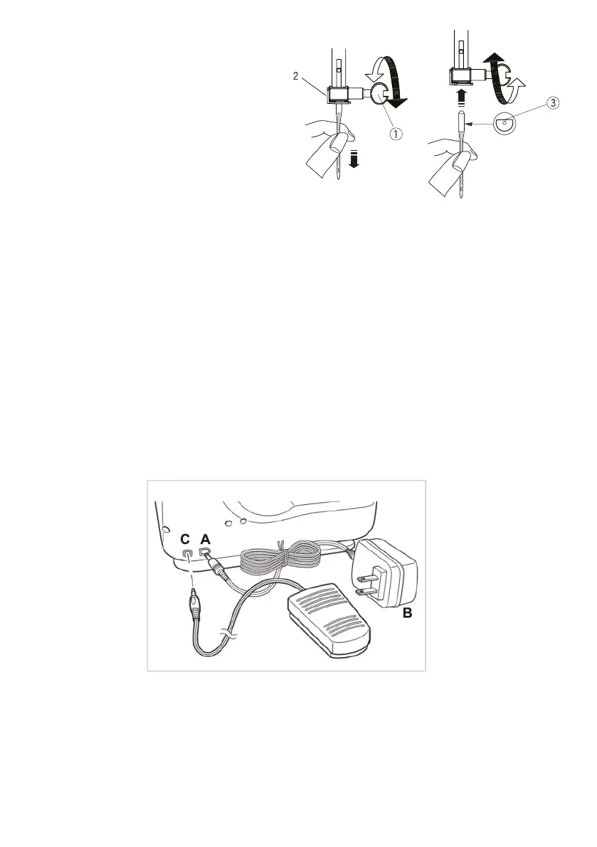 3. Connectez la pédale position C à la machine à coudre en insérant la prise dans le connecteur