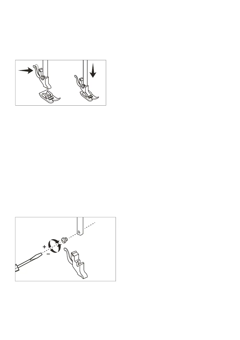 2. Afloje el tornillo de ajuste del prensatelas girando el destornillador en sentido