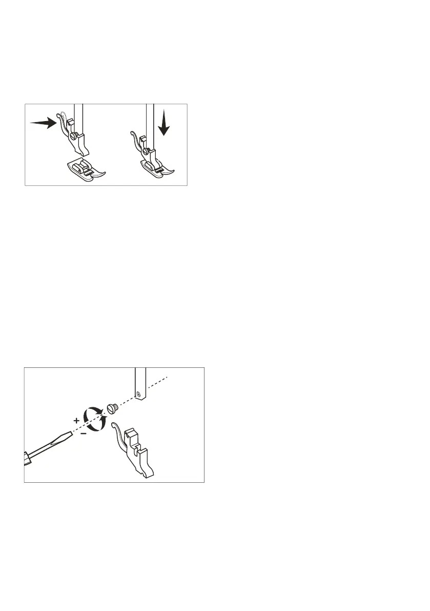 3. Place the presser foot under the presser support, lower the pressure foot lever and press