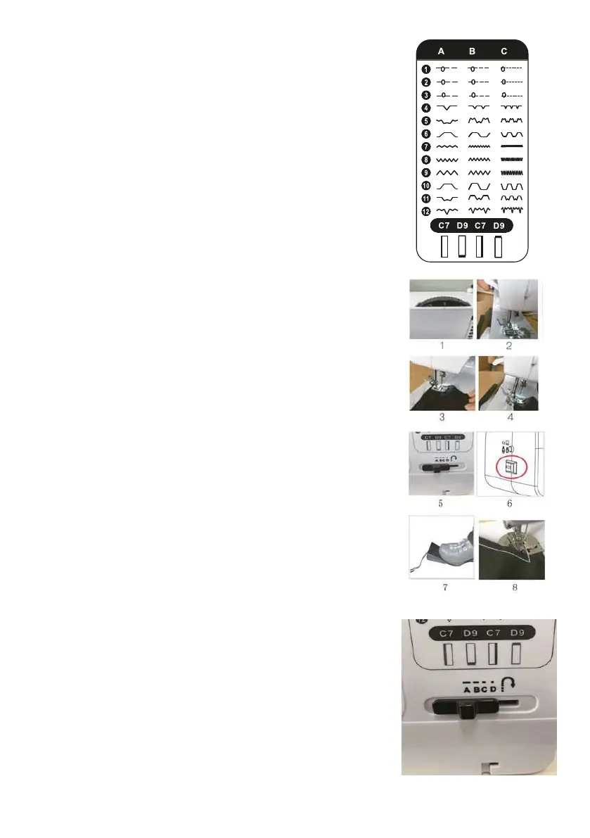 1. Sélectionnez le point de couture approprié. Les points 1 à 3