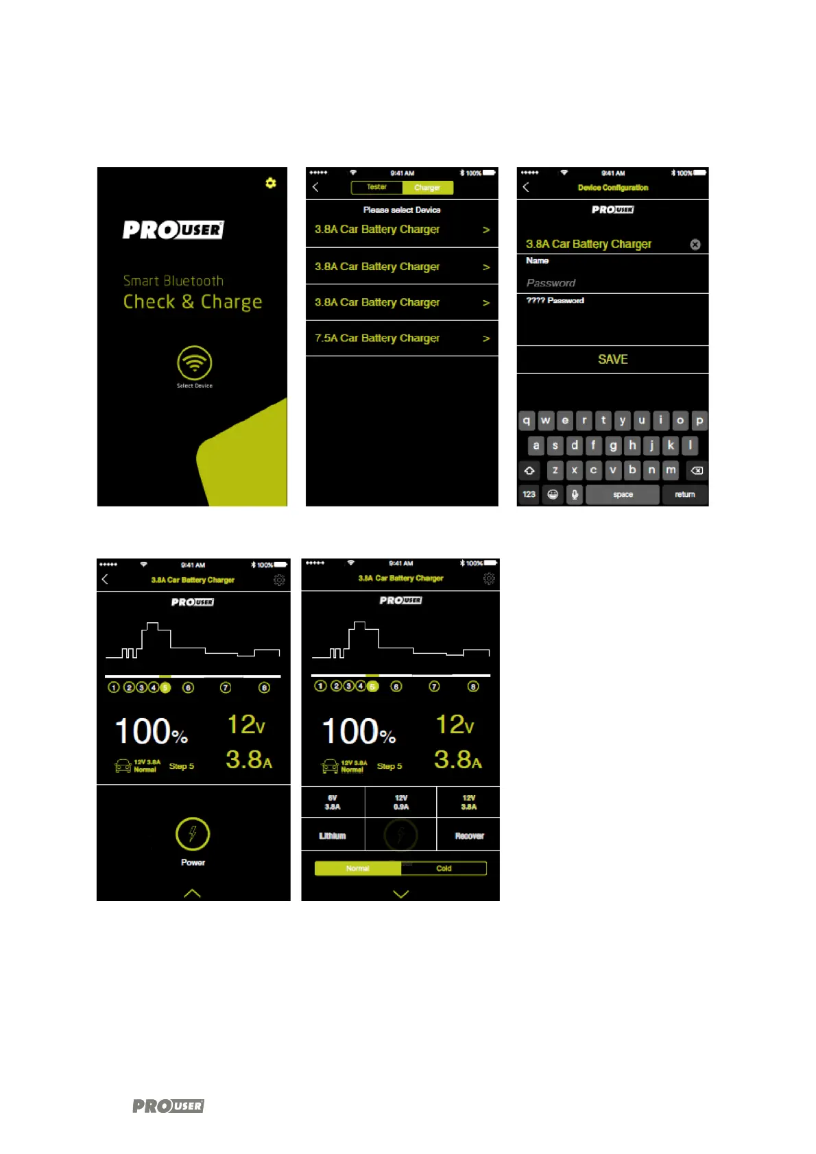 Startseite von “Check & Charge” Liste der verbundenen Name und Passwort Einstellung