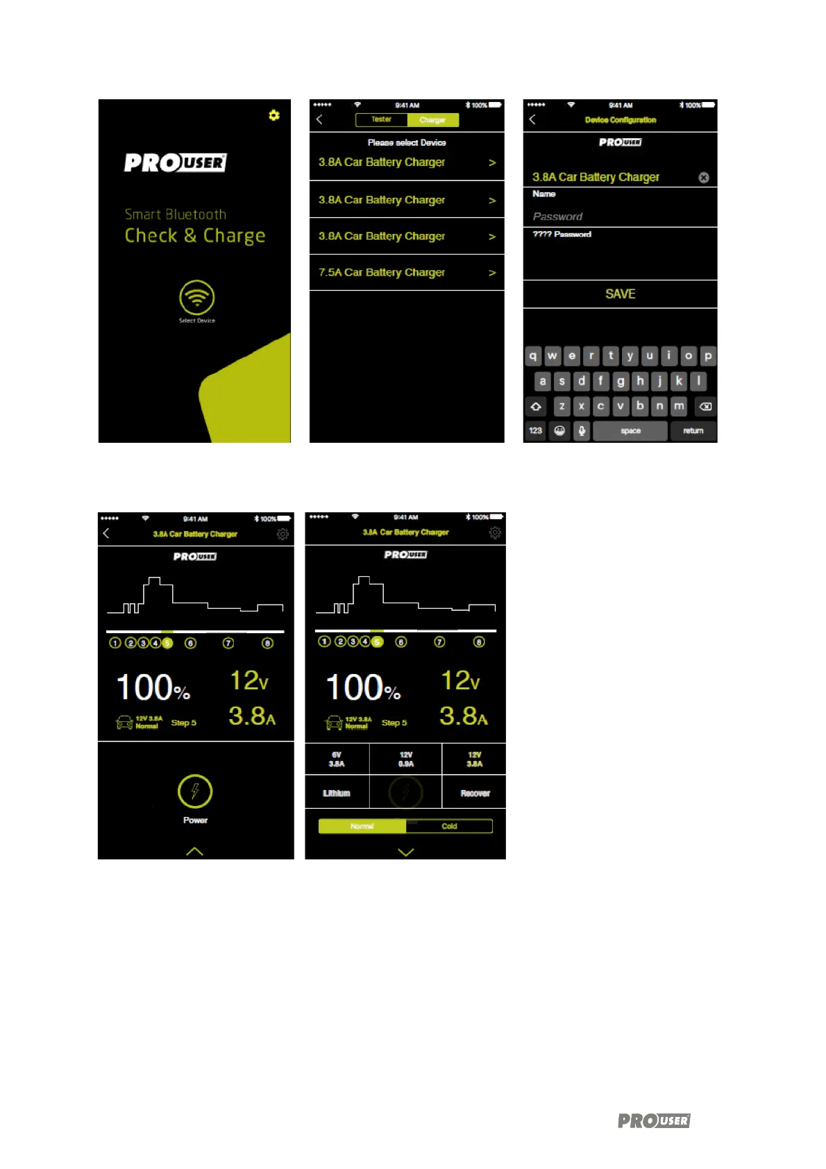 Accueil “Check & Charge” Liste des appareils Réglage Nom et Mot de passe