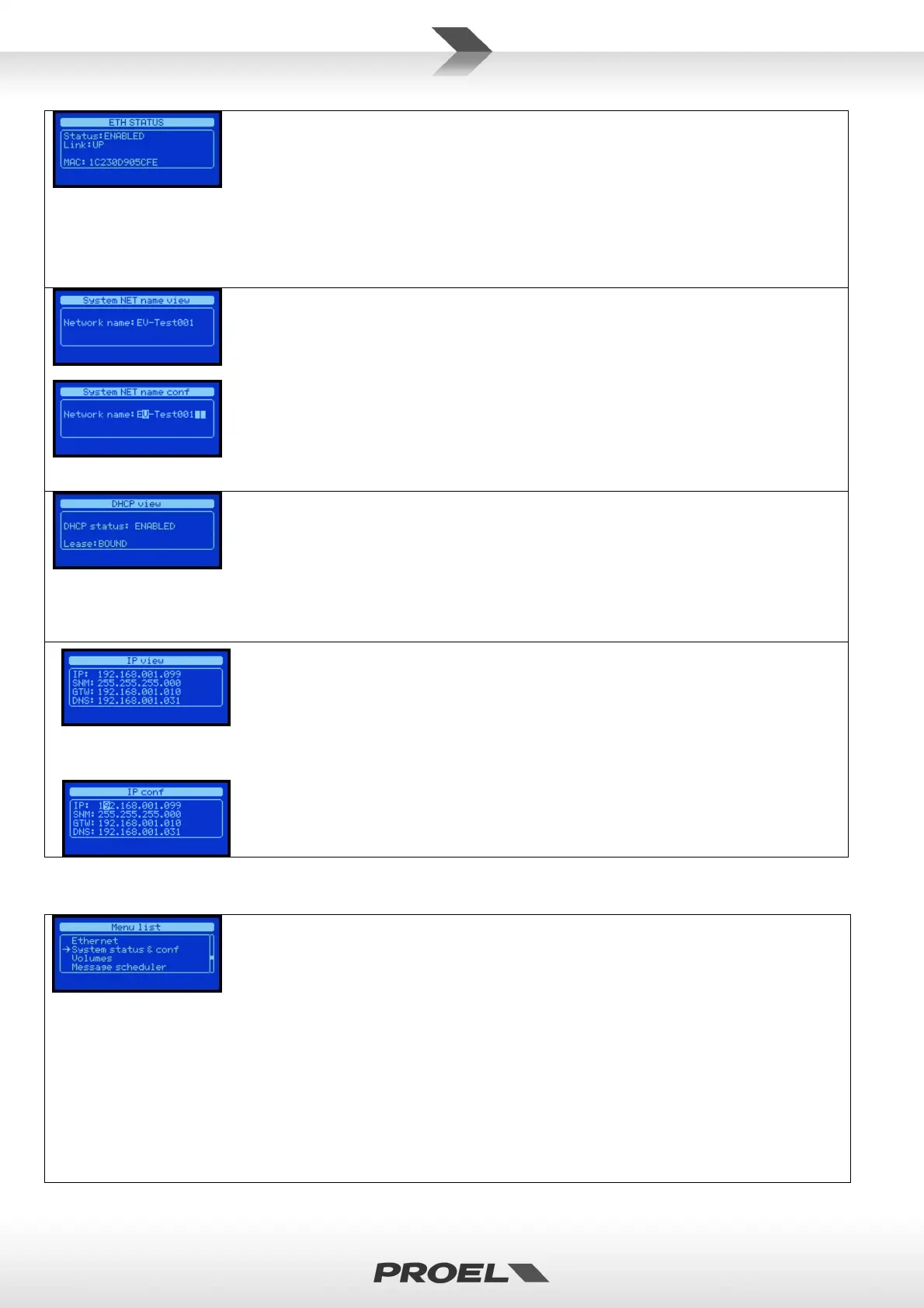The ETH STATUS menù allows you to view the status of the system's network connection.