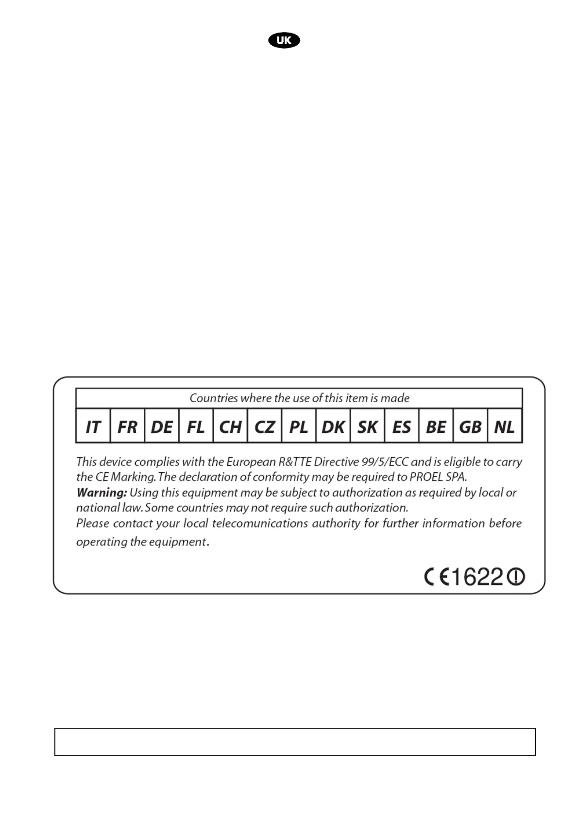 classification and application, and on the selected frequency. Proel strongly urges the user to contact the appropriate