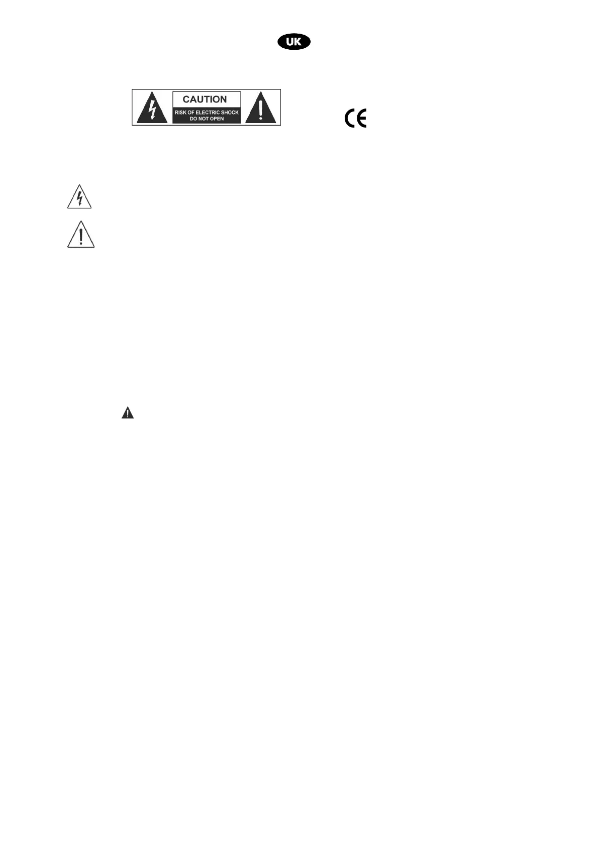 CAUTION: To reduce the risk of electric shock do not remove cover (or back panel). No user serviceable parts inside. Refer servicing to