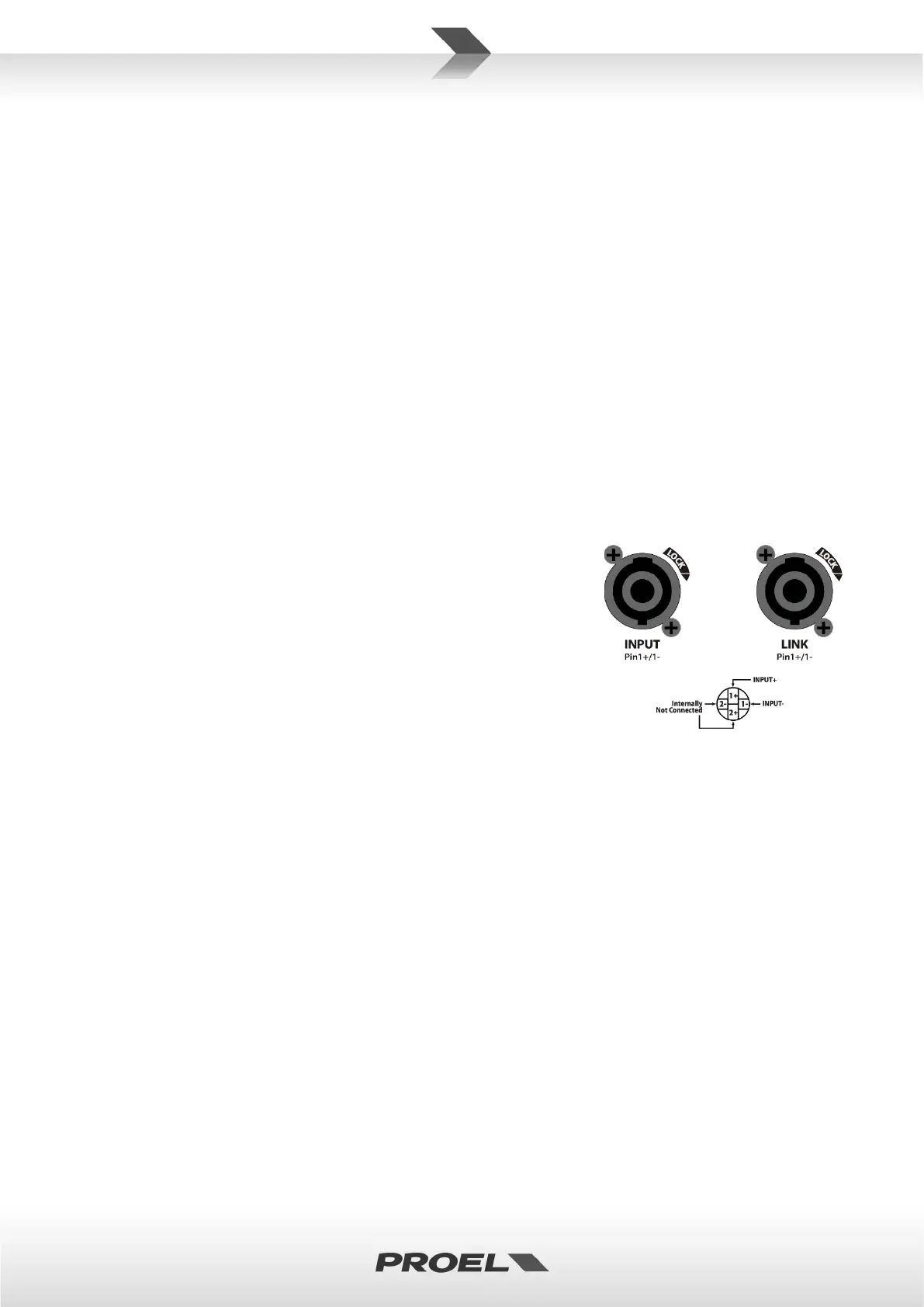Output of the power signal to be sent to another satellite loudspeaker. INPUT and LINK connectors are